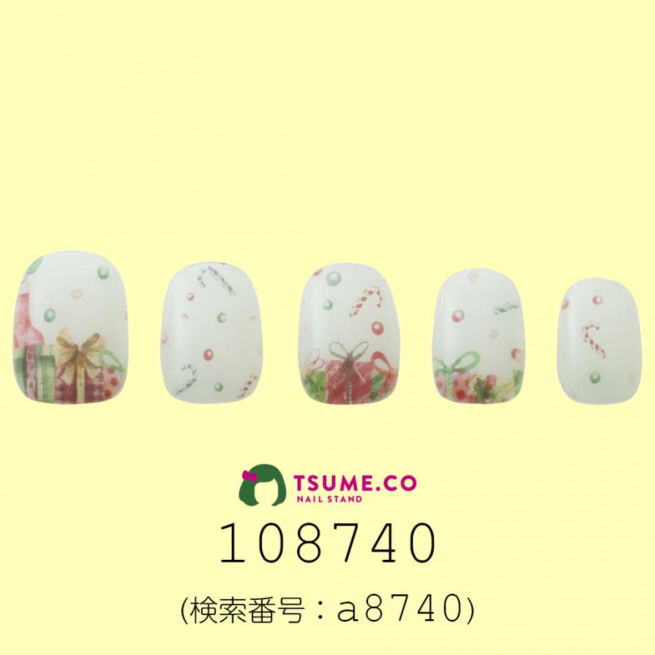 クリスマスプレゼントがデザインされたネイル。水彩画風で大人ネ...